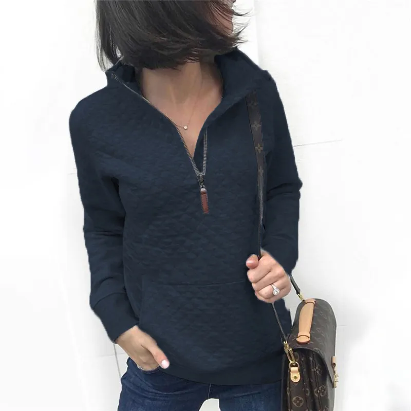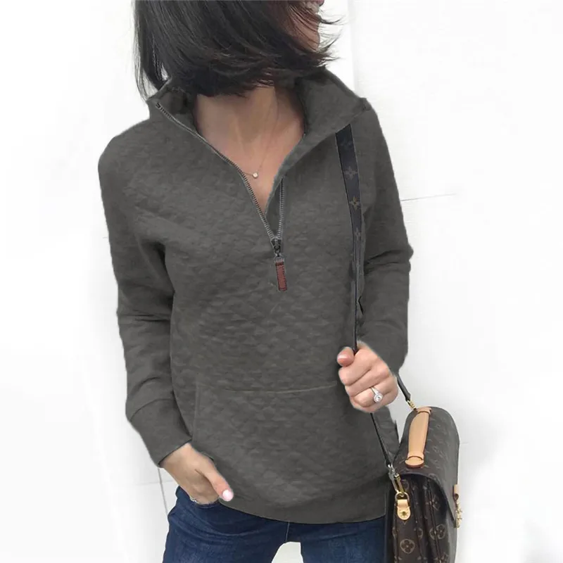 Special Offer Zakken Rits Half Open Lange Mouwen Vrouwen Tops Slanke Turn Down Kraag Casual Sweatshirts Rooster Herfst Winter Vrouwelijke Hoodies Discount 25% Today!