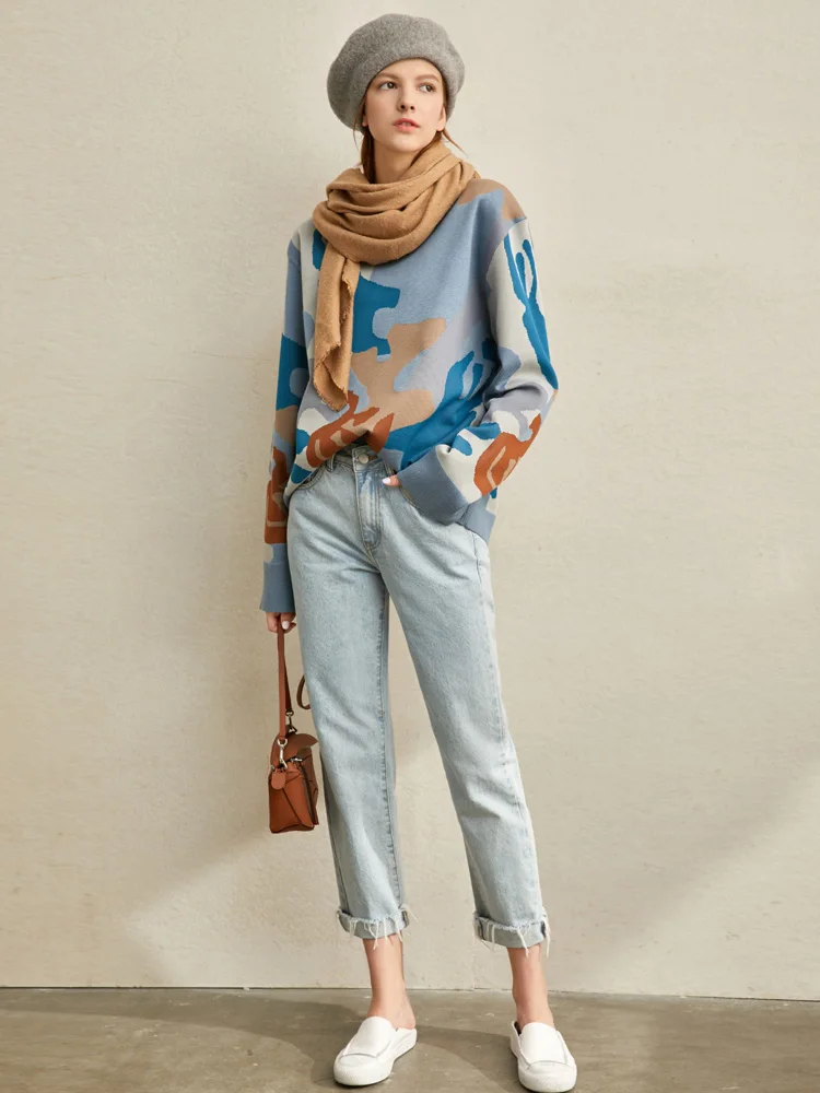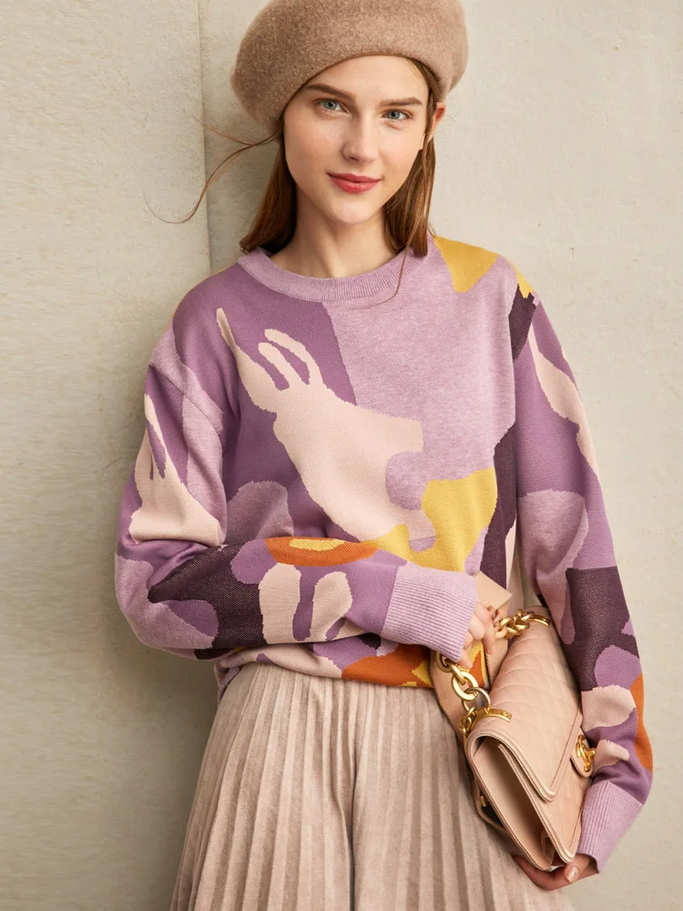 Special Offer Amii Lente Luie Stijl Losse Trui Vrouwen Nieuwe Contrasterende, Ronde Kraag Base Wollen Trui Pullover Tops 11970381 Discount 30% Today!
