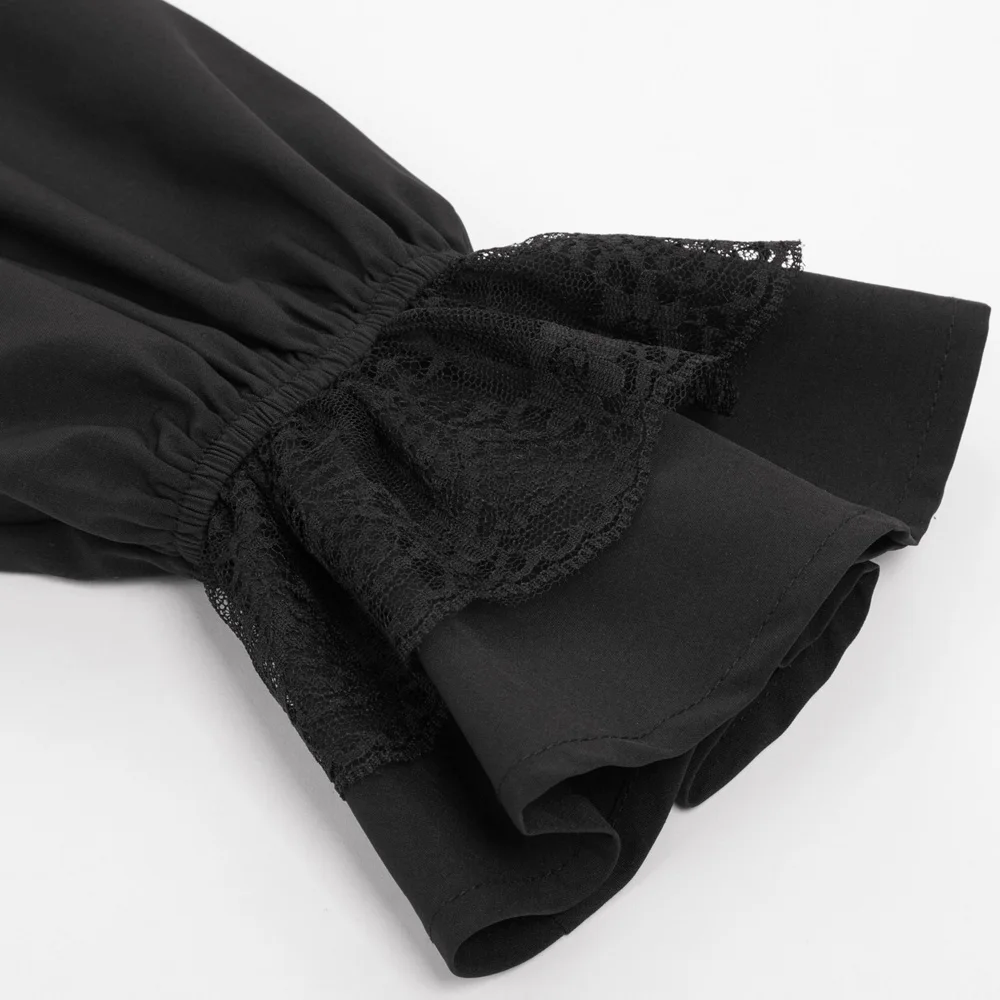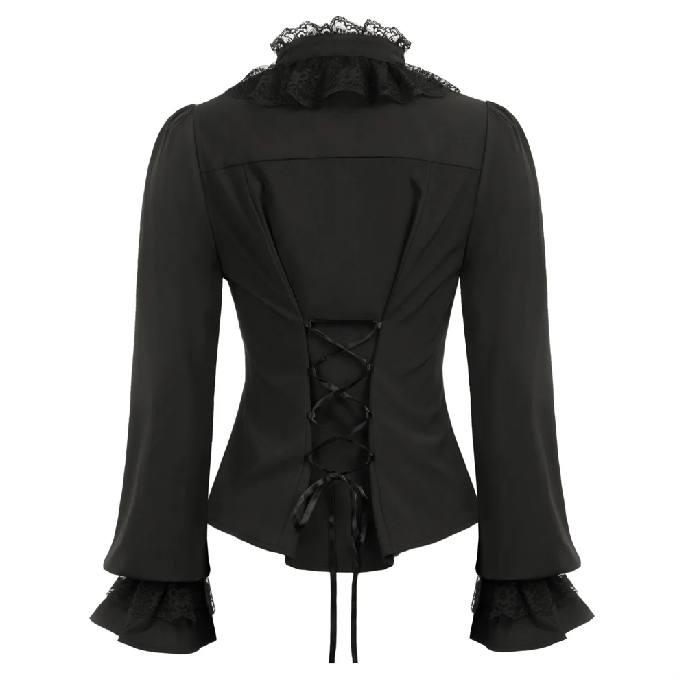 Special Offer Retro shirt Vrouwen tops Vintage Lange Mouwen blouse club feestavond Stand Kraag Kant ruche Overhemd lolita gothic kant up Tops Discount 33% Today!