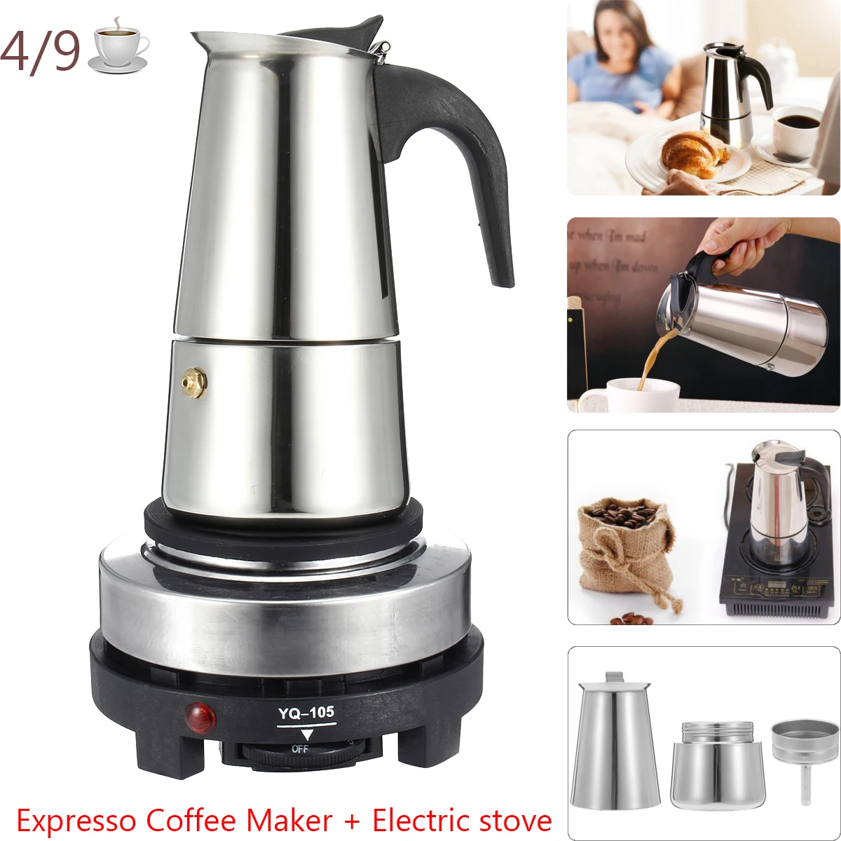 Special Offer 200 450 Ml Draagbare Espresso Koffiezetapparaat Moka Pot Rvs Met Elektrische Fornuis Filter Percolator Koffie Brouwer Waterkoker Discount 35% Today!