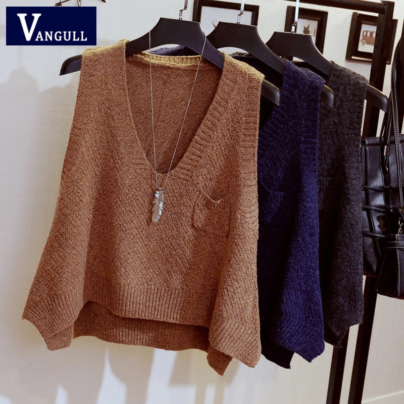 Special Offer Vangull Vrouw Trui Vest Jas 2019 Lente Koreaanse Stijl Nieuwe Vrouwen V hals Mouwloze Losse Korte Gebreide Wollen Trui Vest Discount 49% Today!