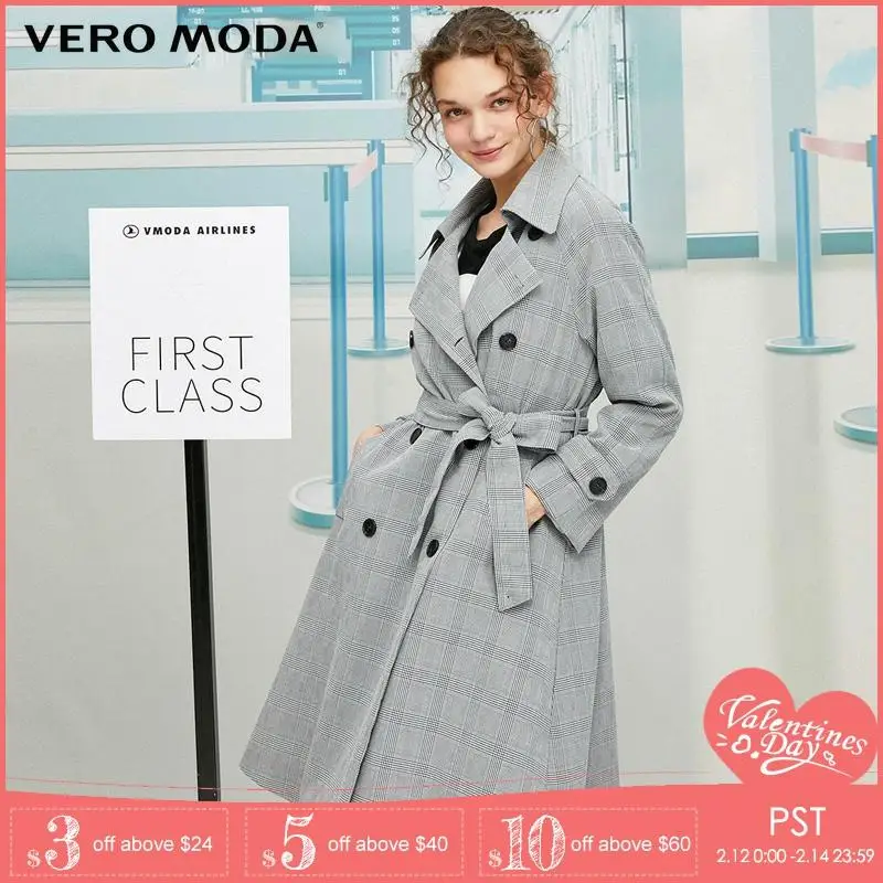 Special Offer Vero Moda Vrouwen Engeland Stijl Slim Fit Plaid Trenchcoat | 319321552 Discount 60% Today!