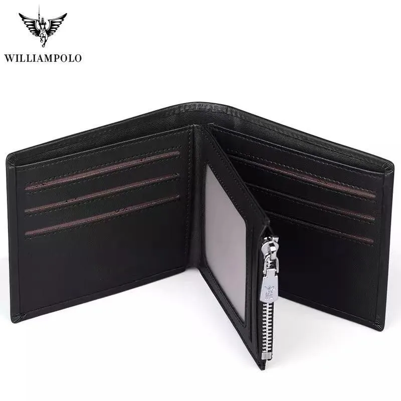 Special Offer WILLIAMPOLO leer echt mannen portefeuilles rits korte portemonnee mannen Koeienhuid Originele Mini Purse fashion design luxe portefeuilles voor me Discount 61% Today!