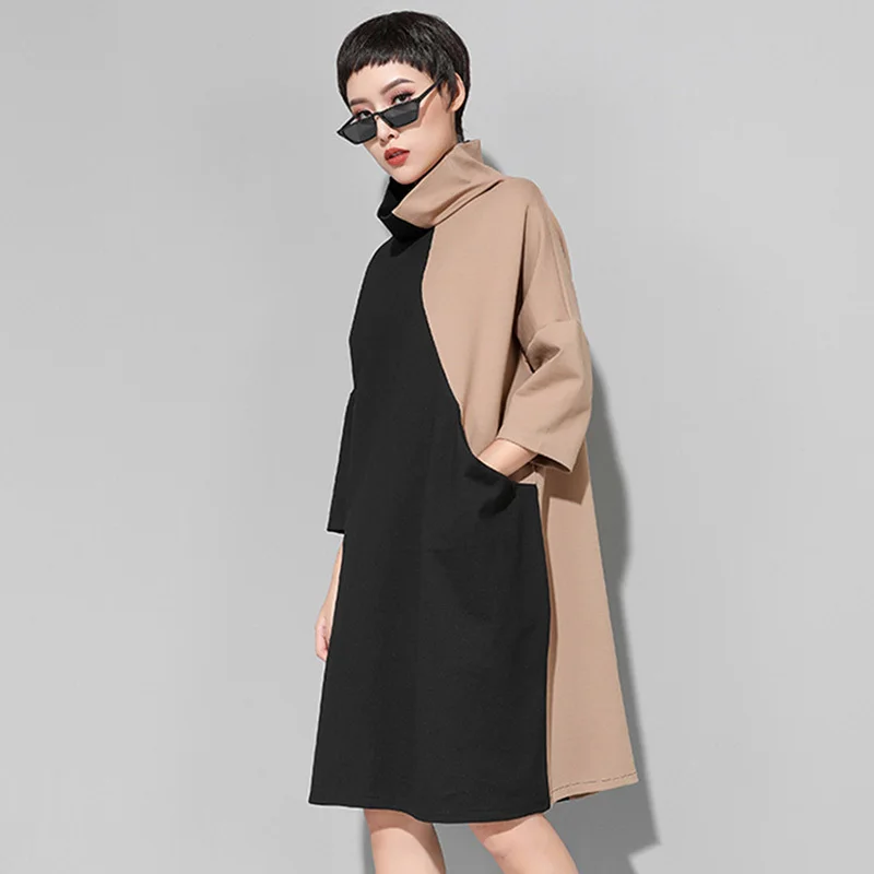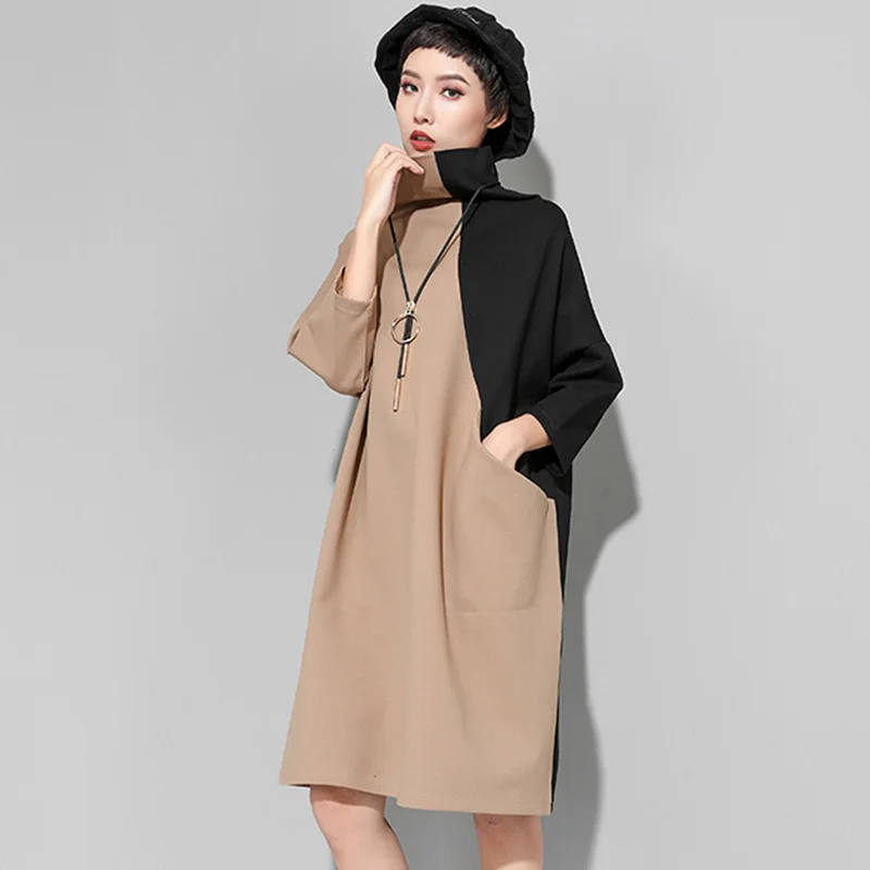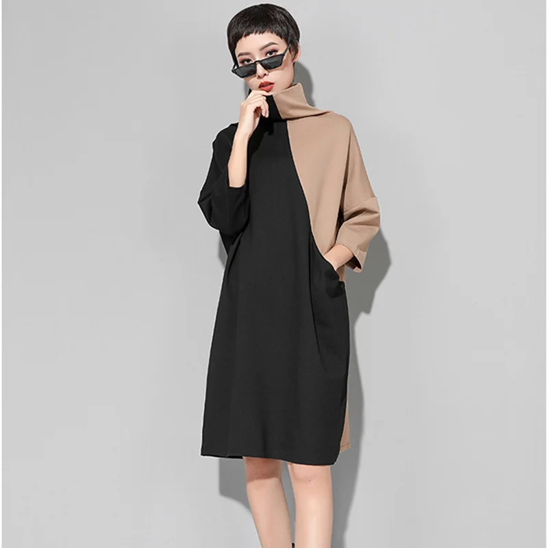 Special Offer [Eam] 2020 Nieuwe Lente Winter Hoge Kraag Lange Mouwen Hit Kleur Losse Grote Maat Sweater Jurk Vrouwen Mode tij JK399 Discount 17% Today!