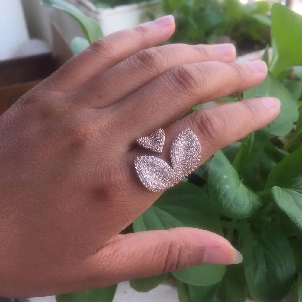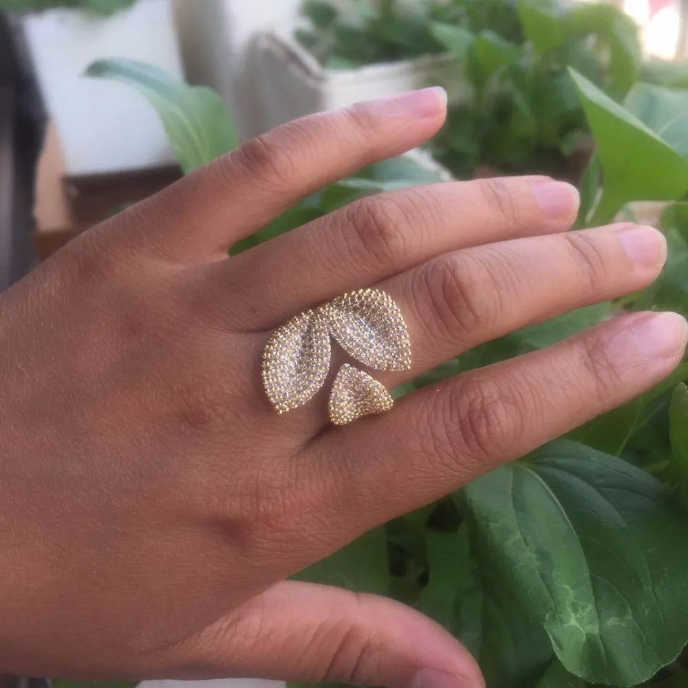 Special Offer Cz Pave Instelling Unieke Leaf Rose Flower Ring Open Verstelbare Grote Ring Set Voor Vrouwen Fashion Wedding Finger Party Accessoires Discount 30% Today!