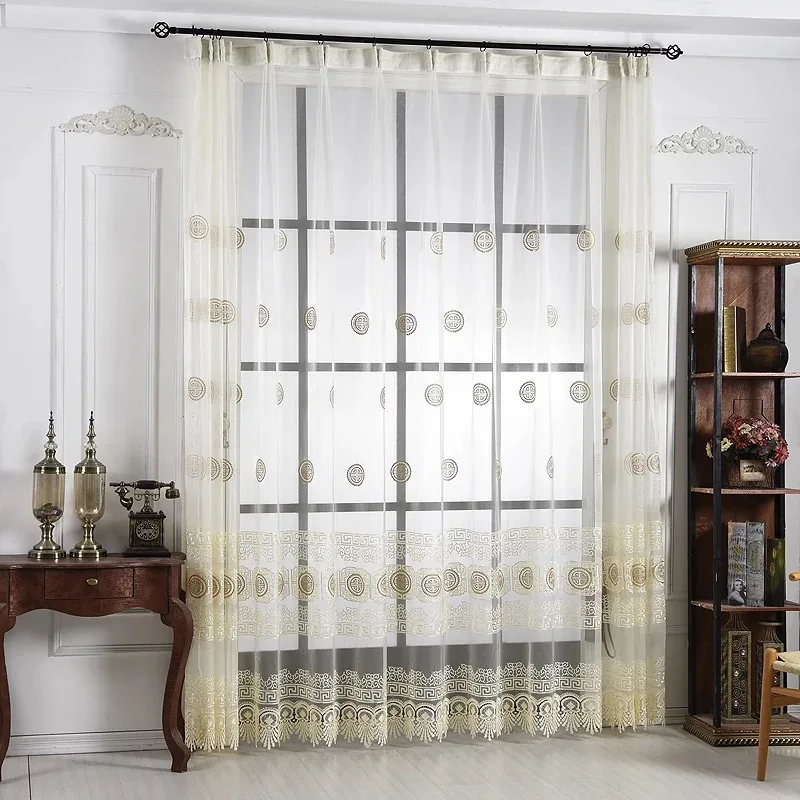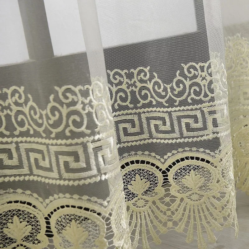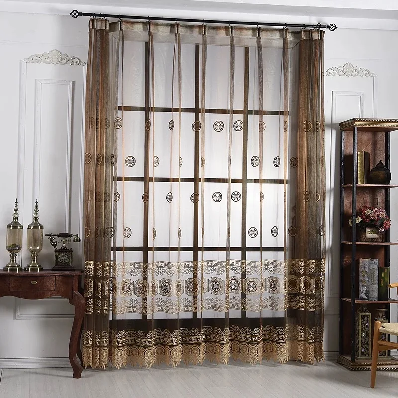 Special Offer Chinese Luxe Venster Beige Tule Gordijnen Voor Woonkamer Keuken Sheer Koffie Gordijn Panelen Venster Behandelingen Gordijnen T261 #4 Discount 43% Today!