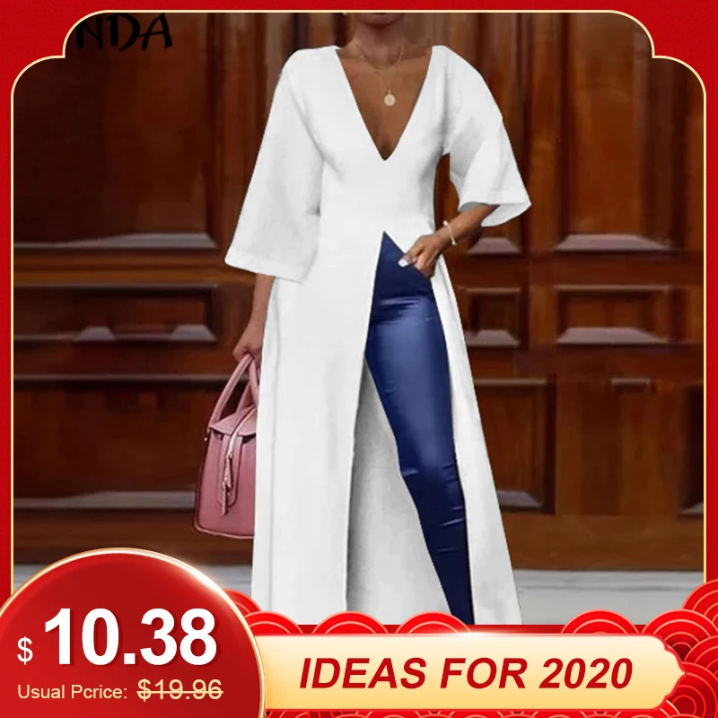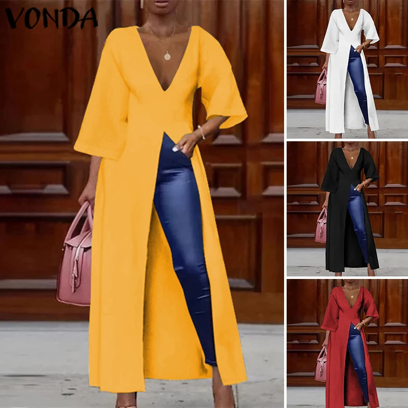 Special Offer Vonda Vrouwen Diepe V hals Split Lange Jurken Cocktail Party Sexy Jurk Lange Shirts Kantoor Blouse Vrouwelijke Holiday Vestido Plus size Discount 45% Today!