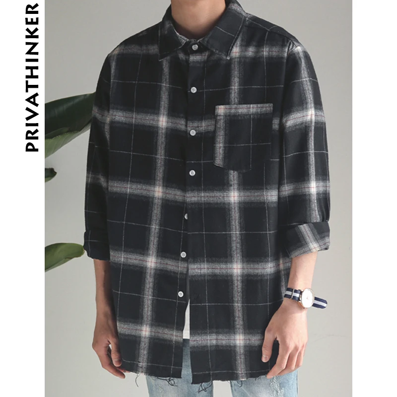 Special Offer Privathinker Plaid Shirts Oversized Lange Mouwen Shirt Mannen Vrouwen Casual Plaid Flanel Burr Shirts Harajuku Mannelijke Strip Shirts Discount 35% Today!