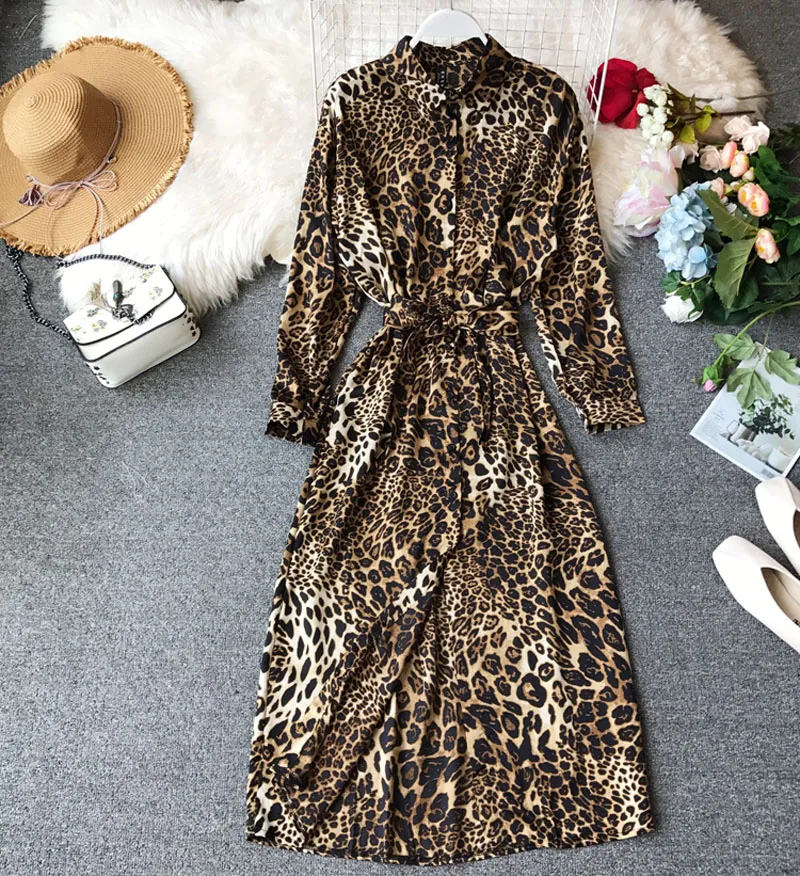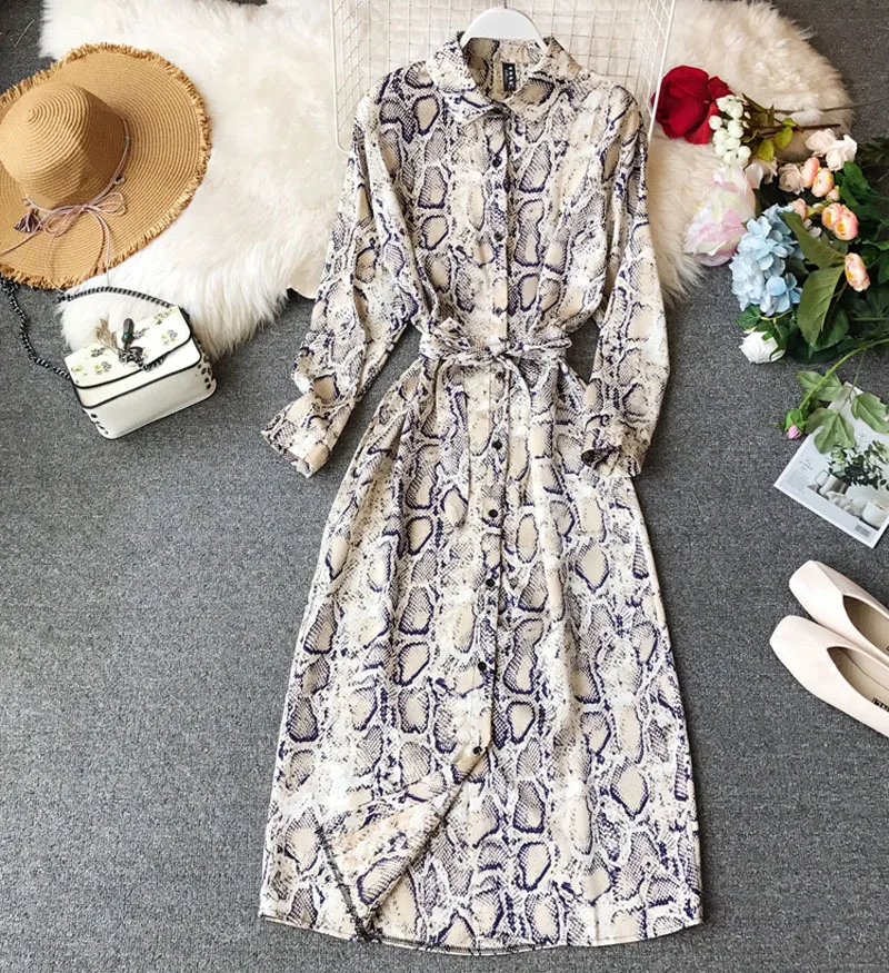 Special Offer 2019 lente en zomer vrouwen chic snake patroon jurk lange mouwen nieuwe losse dunne tij shirt jurk lange kanten jurk vrouwelijke Discount 39% Today!