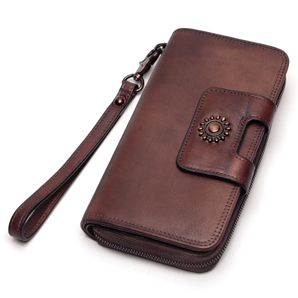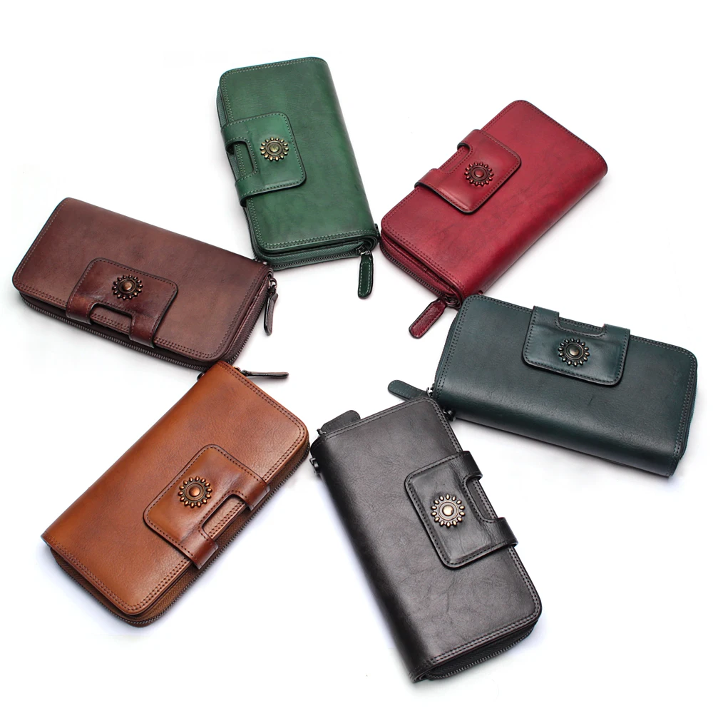Special Offer Hand Verf Portemonnee Multifunctionele Grote Capaciteit Top Laag Koeienhuid Vintage Vrouwen Portefeuilles Hoogwaardige Pure Koeienhuid Lederen Portemonnee Discount 40% Today!
