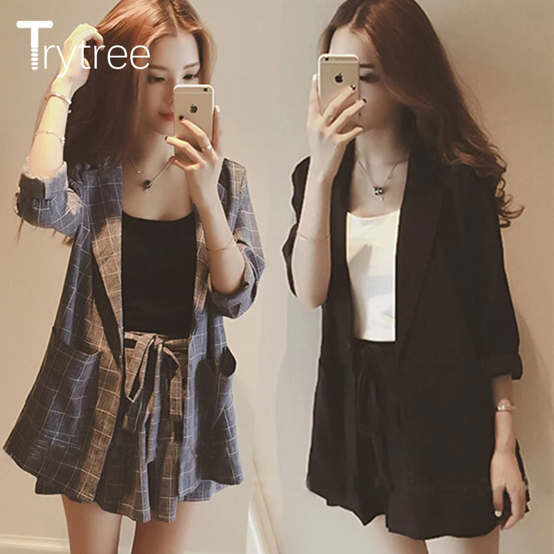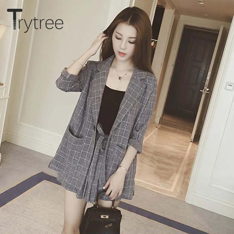 Special Offer Trytree Zomer Herfst Vrouwen Tweedelige Set Casual Tops + Shorts Plus Size Plaid Top Vrouwelijke Kantoor Pak Set Vrouwen S 2 Delige Set Discount 40% Today!
