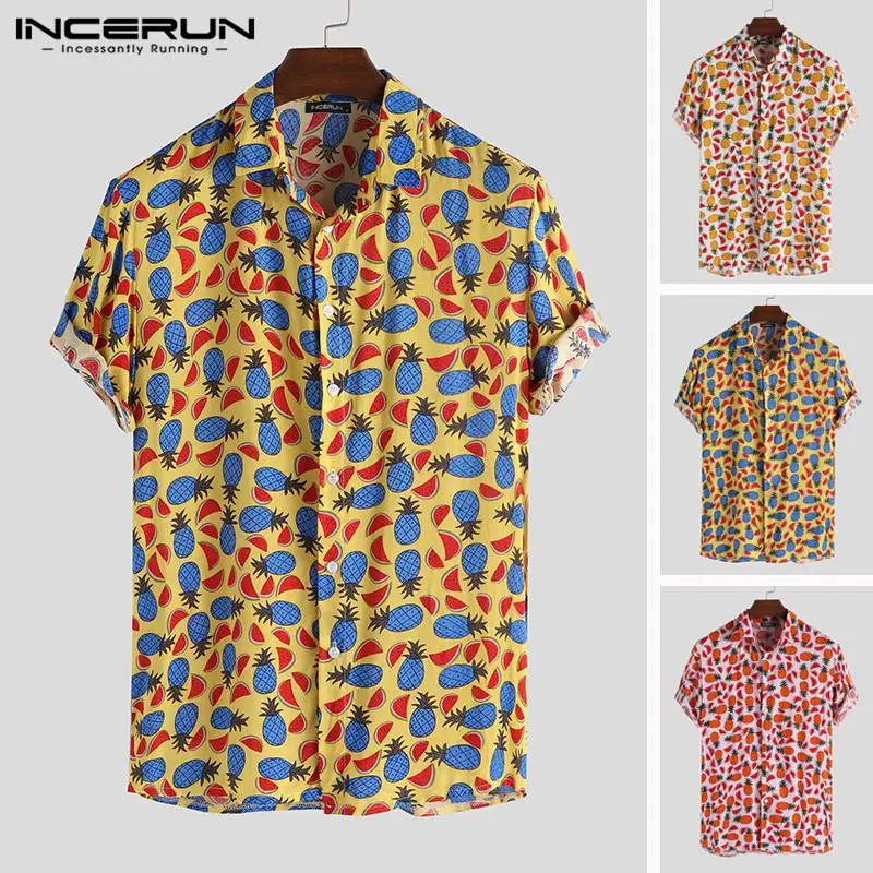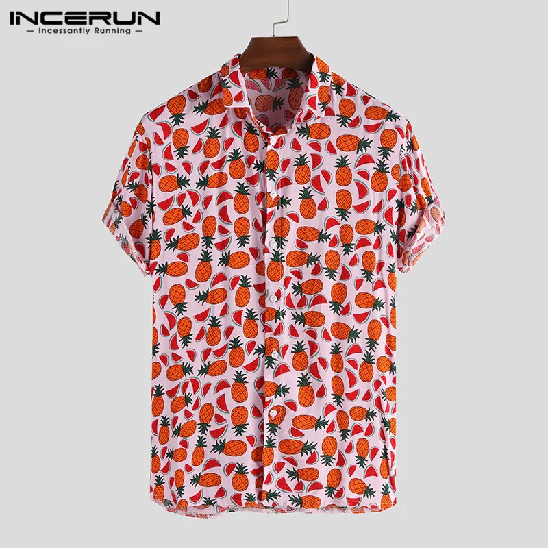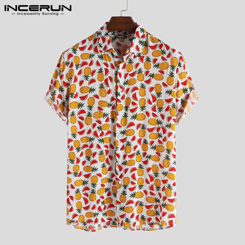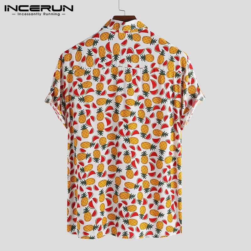 Special Offer INCERUN Fruit Afdrukken Shirt Mannen Revers Hals Zomer Losse Korte Mouw Hawaiian Strand Overhemd Knop Street Casual Tops Camisa 2019 Discount 40% Today!