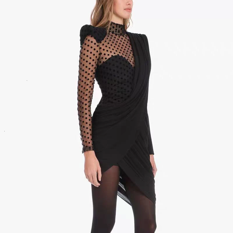 Special Offer Twotwinstyle Elegante Asymmetrische Dot Jurken Vrouwelijke Stand Kraag Bladerdeeg Mouw Hoge Taille Ruches Mesh Jurk Vrouwen Mode Kleding Discount 42% Today!