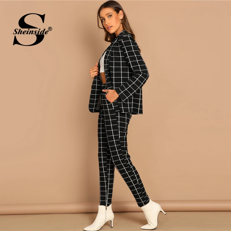 Special Offer Sheinside Mode Sjaal Kraag Plaid Blazer En Taps Toelopende Broek Set Vrouwen Lente Elegante Werkkleding Plaid Blazer 2 Delige Set Discount 45% Today!