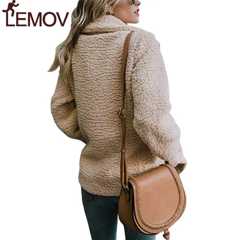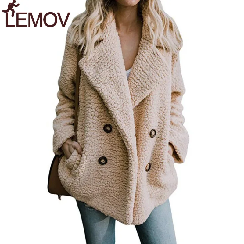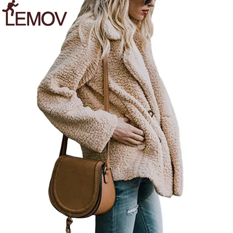 Special Offer 2019 Winter Solid Coat Vrouwen Herfst Brede Revers Losse Warm Uitloper Vrouwelijke Casual Jumper Dames Losse Blend Jas Faux fur dames Discount 45% Today!