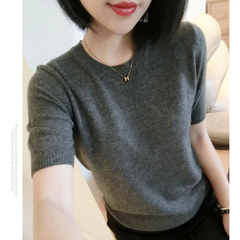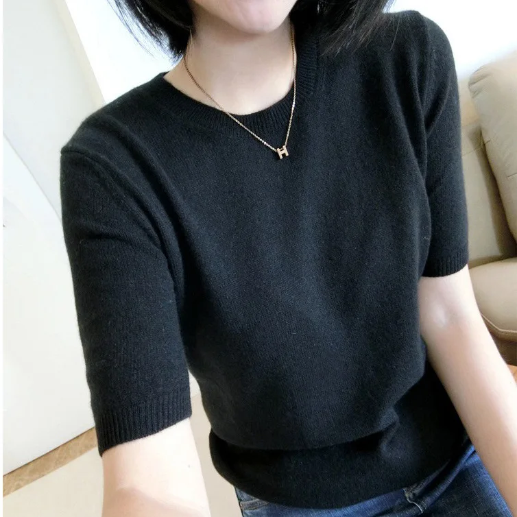 Special Offer Multi color Meer Code Korte Mouw Trui Vrouwelijke 2019 Lente Zomer Nieuwe Stijl ronde Hals Slim Fit kasjmier Trui Effen Kleur Discount 46% Today!