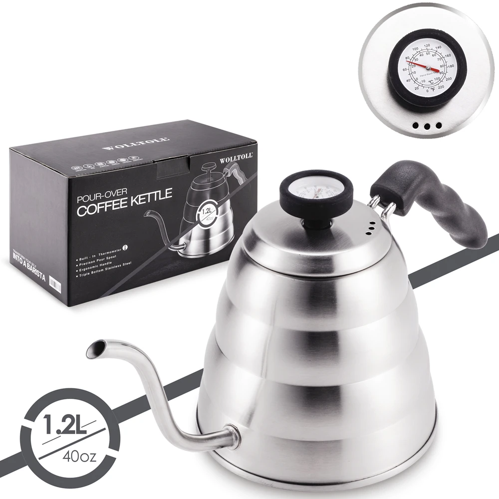 Special Offer Roestvrij Staal Thee Koffie Waterkoker Met Thermometer, Zwanenhals Dunne Uitloop Voor Giet Over Koffie Pot, werkt Op Kookplaat, 40 Oz 1.25L Discount 58% Today!