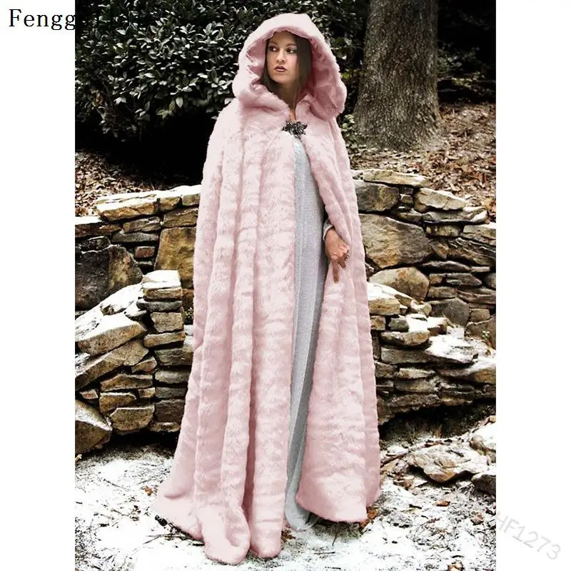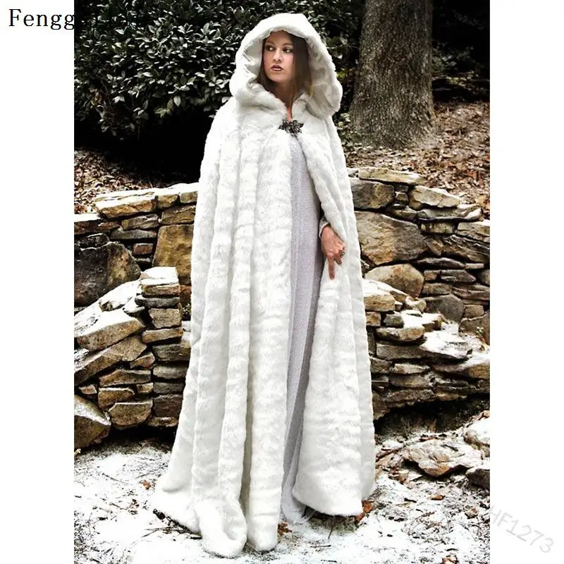 Special Offer Middeleeuwse Vintage Winter Faux Fur Lange Hooded Mantel Voor Vrouwen Warm Sneeuw Witte Toga Maxi Bridal Wedding Capes Jas Discount 0% Today!
