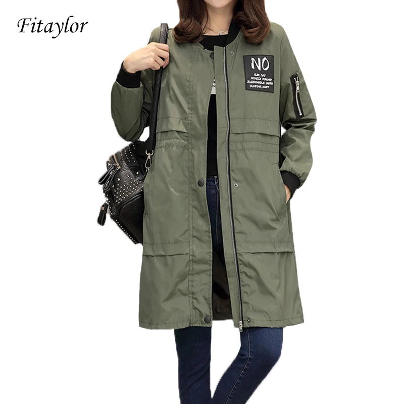 Special Offer Fitaylor Herfst Vrouwen Windbreaker Jas Mode Casual Jas O Hals Lange Mouw Brief Afdrukken Medium Lange Slanke Jas Discount 20% Today!