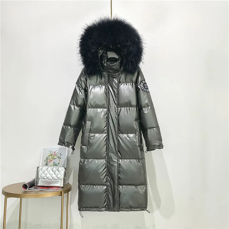 Special Offer Grote Echte Wasbeer Bontkraag 2019 Hooded Winter Jas Vrouwen Lange Witte Eendendons Parka Jas Vrouwelijke Losse Dikke Warme uitloper Discount 35% Today!