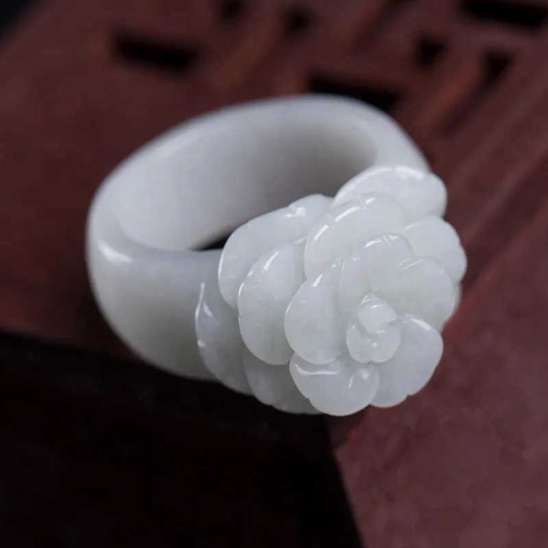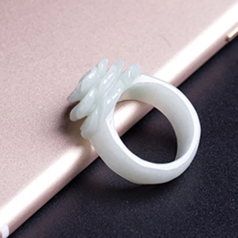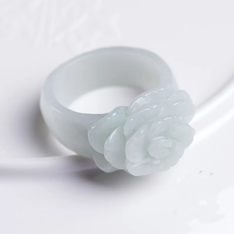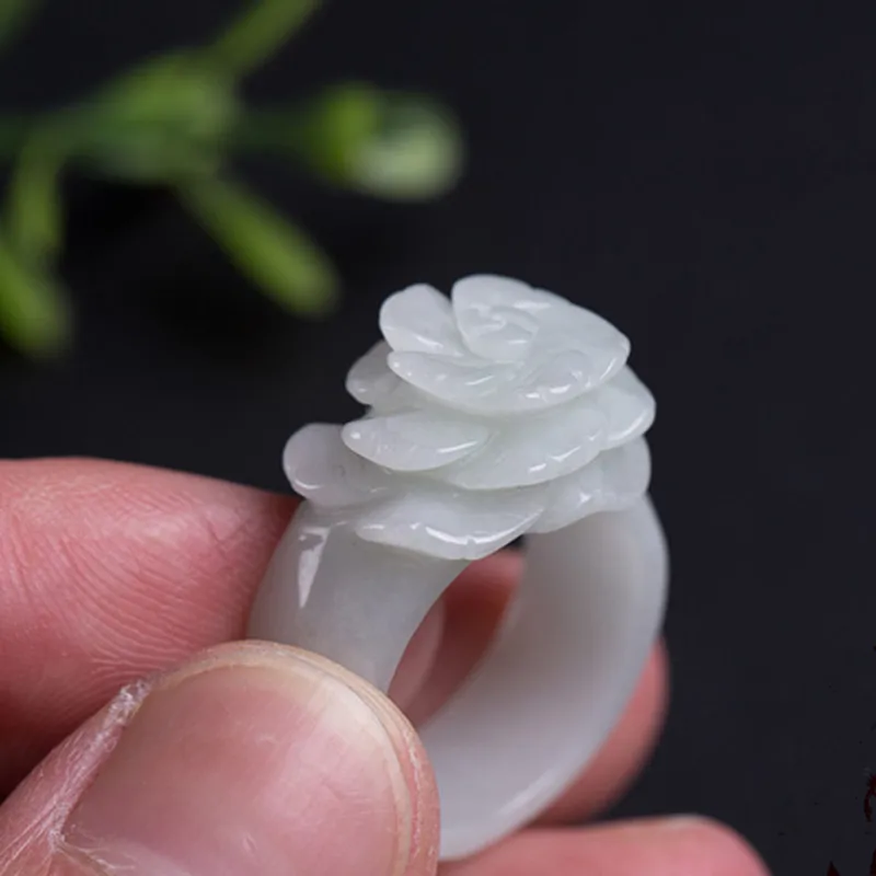 Special Offer Drop verzending Hot Verkoop Natuurlijke Groene Jadeïet Ringen Hand gesneden Jadeïet jades Vrouwen Mode rose bloem Vinger Ring Sieraden Discount 35% Today!
