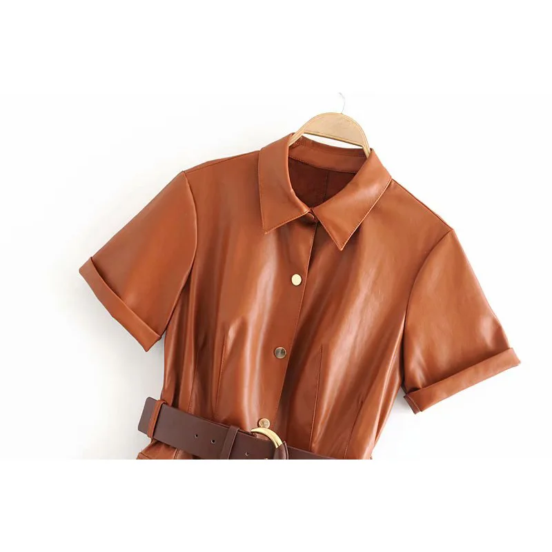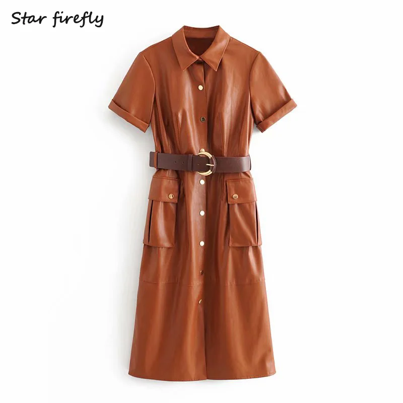 Special Offer Ster Firefly Mode Za Jurk Vrouwelijke 2019 Herfst Toevallige Korte Mouwen Pocket Single Breasted Met Riem Imitatie Lederen jurk Discount 39% Today!