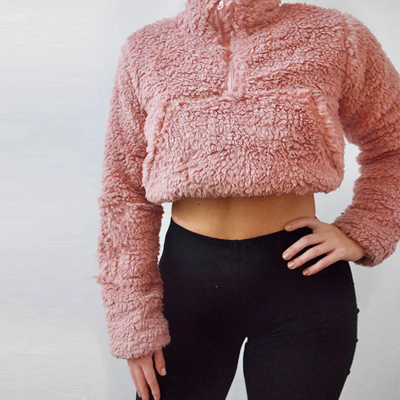 Special Offer Cryptografische Harige Effen Sweatshirt Voor Vrouwen Rits Lange Mouwen Truien Crop Top 2019 Herfst Winter Toevallige Sweater Slanke Discount 40% Today!