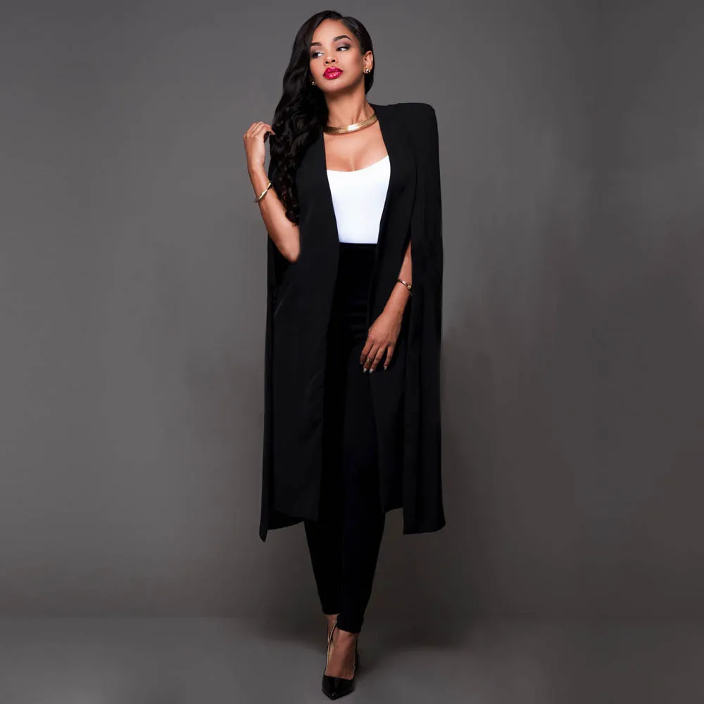 Special Offer Plus Size Vrouwen Blazer Elegante Lange Mantel Jas Hoge Kwaliteit Cape Wit Zwart Bordeaux Kleur Kantoor Dagelijkse Hoge straat ZSC G013 Discount 47% Today!