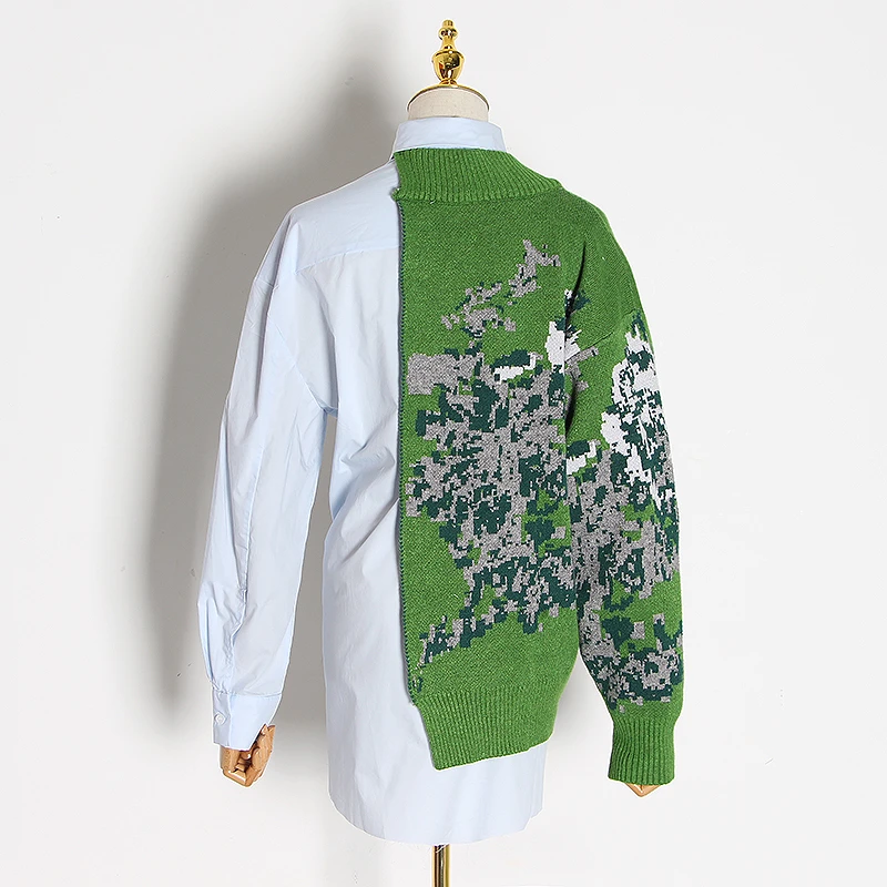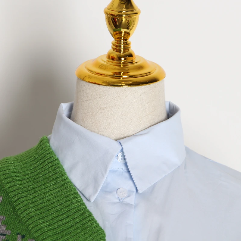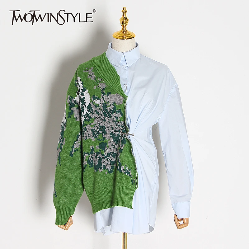 Special Offer TWOTWINSTYLE Patchwork Hit Kleur Kitting Shirts Vrouwelijke Revers Kraag Lange Mouwen Hoge Taille Tuniek Onregelmatige Blouses Vrouwen Mode Discount 52% Today!