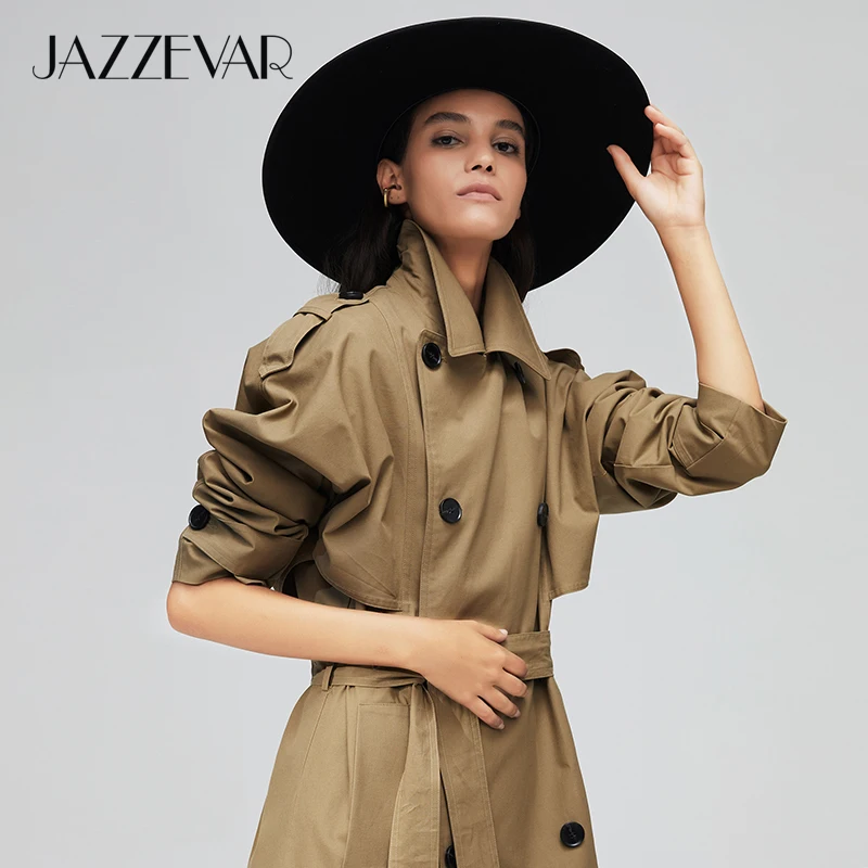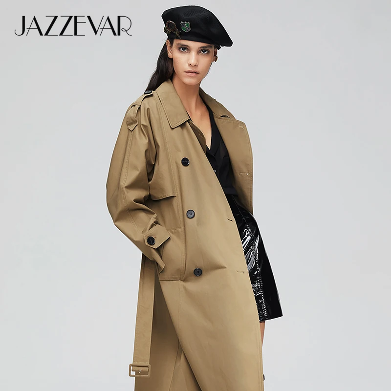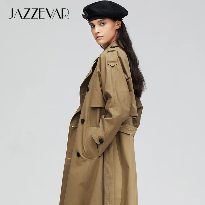 Special Offer JAZZEVAR 2019 Nieuwe collectie herfst trenchcoat vrouwen katoen gewassen lange double breasted geul losse kleding hoge kwaliteit 9013 1 Discount 59% Today!