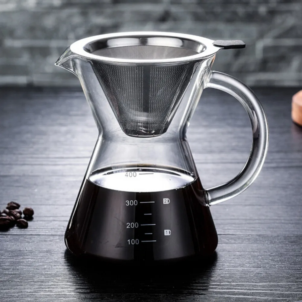 Special Offer 400ml Giet Over Koffiezetapparaat Drip Dikker Glas Container Hand Percolators Rvs Koffie Filter Thuis Drinkwares Discount 1% Today!