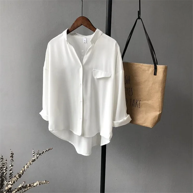 Special Offer Hoge kwaliteit Casual Chiffon witte Vrouwen blouse shirt oversized Drie Kwart mouw losse shirt kantoor slijtage casua tops blusas Discount 15% Today!