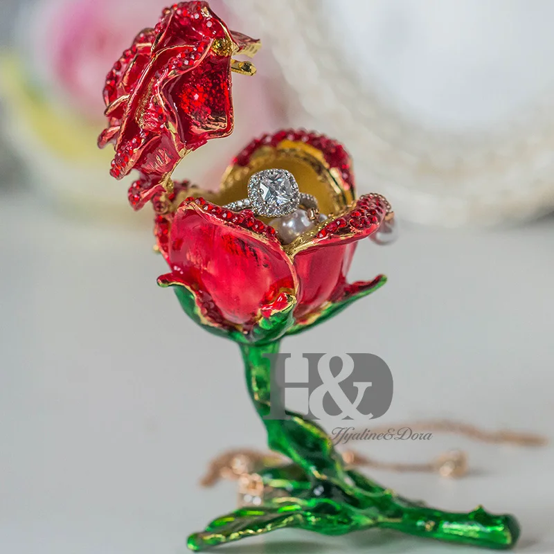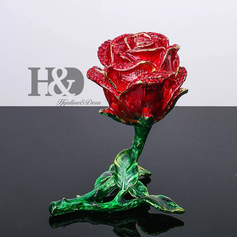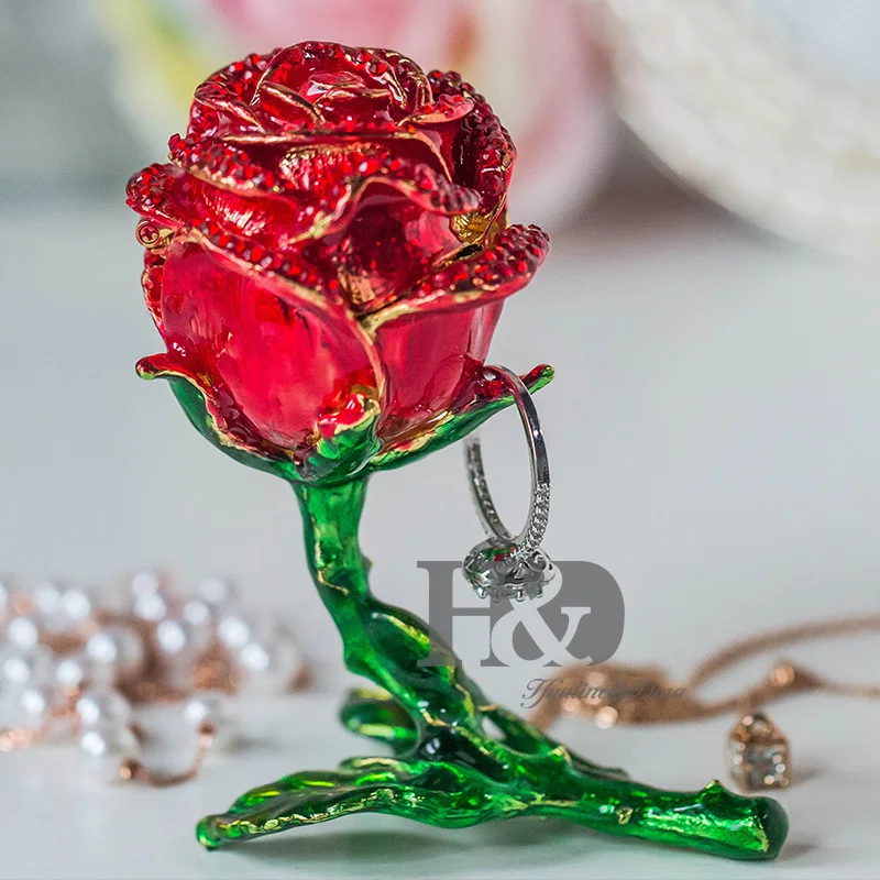 Special Offer H D Bloem Trinket Doos Handgeschilderde Scharnierende Ring Houder Patronen Trinket Bejeweled Box Decor met Crystal Gift collectible (rood) Discount 15% Today!