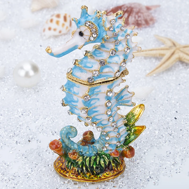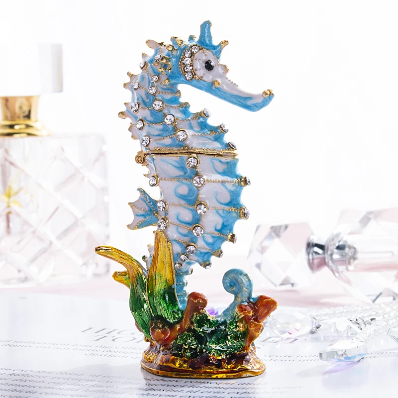 Special Offer H D Trinket Box Crystal Bejeweled Geëmailleerd Zeepaardje Sieraden Ring Houder Handgemaakte Sealife Beeldje Collectible Decoration Gift Discount 20% Today!