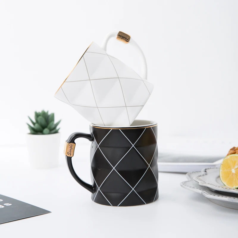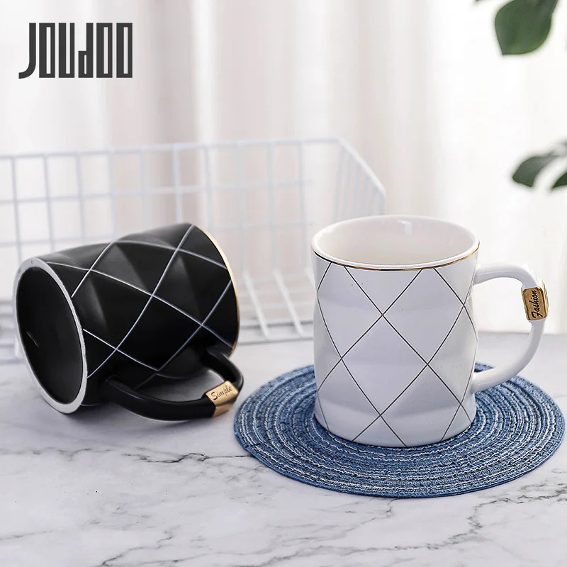 Special Offer JOUDOO Nordic Golden Zwart en Wit Raster Geometrie Keramische Koffie Mok Porselein Sap Drinkbeker Koffie Melk Thee Cup 35 Discount 35% Today!