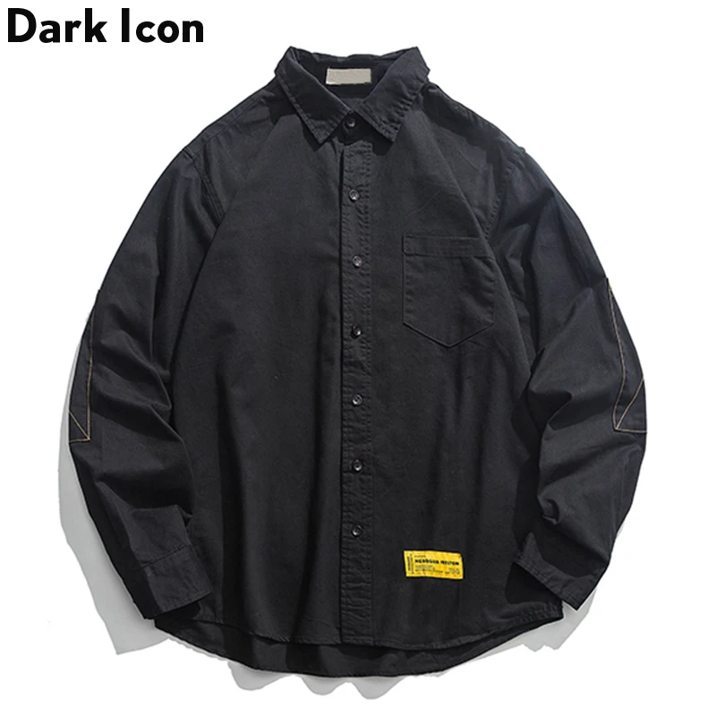 Special Offer Effen Kleur Lange Mouwen Mannen Turn down Kraag Voorvak Oversized Shirt Contrast Draden op Mouwen voor mannen Discount 45% Today!