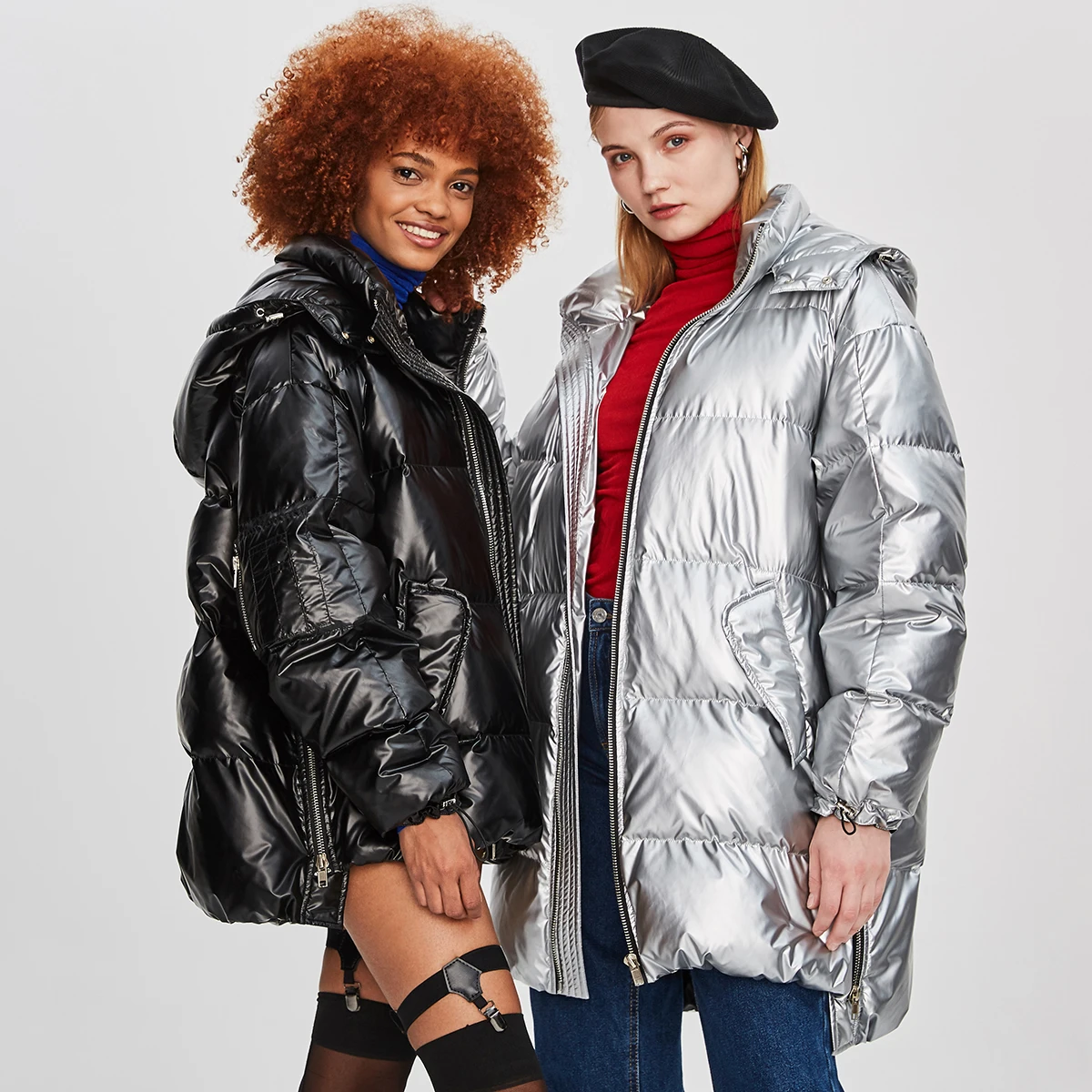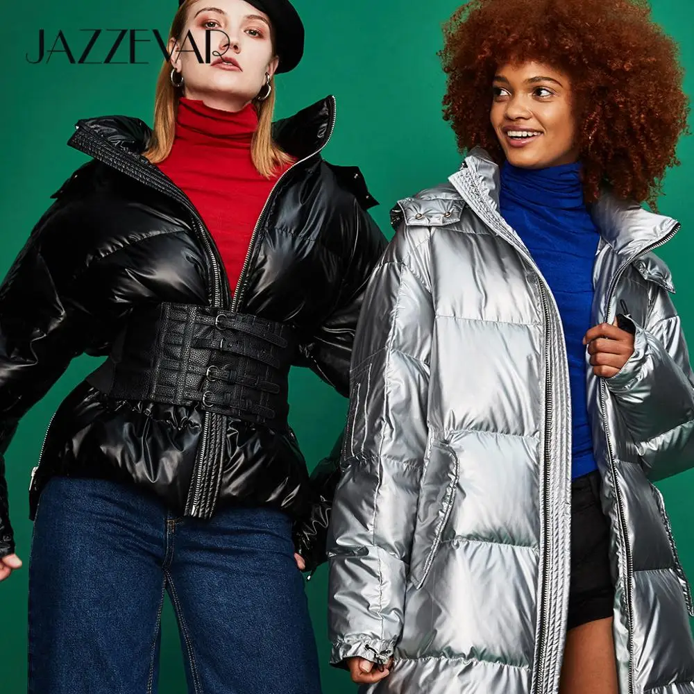 Special Offer JAZZEVAR 2019 Winter Nieuwe Mode Straat Womens Edgy Sliver Lange Down Jassen Cool Meisjes Rits Hooded Down Jas Bovenkleding z18004 Discount 48% Today!