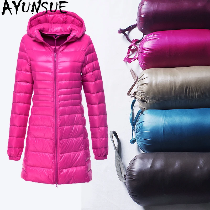 Special Offer AYUNSUE Winter Hooded Ultra Licht Donsjack Vrouwen Plus Size 6xl 7xl Lange Jas vrouwen Down Jassen Campera mujer KJ451 Discount 55% Today!
