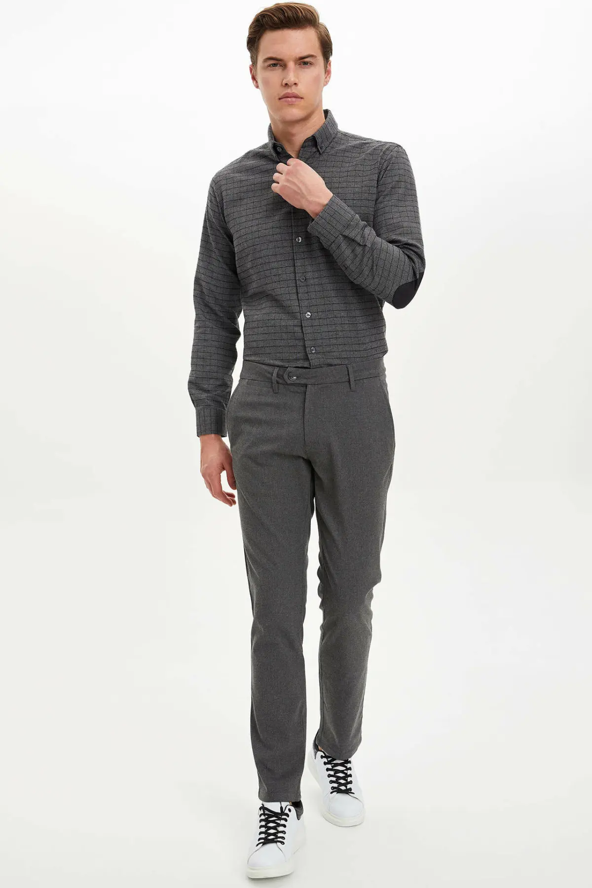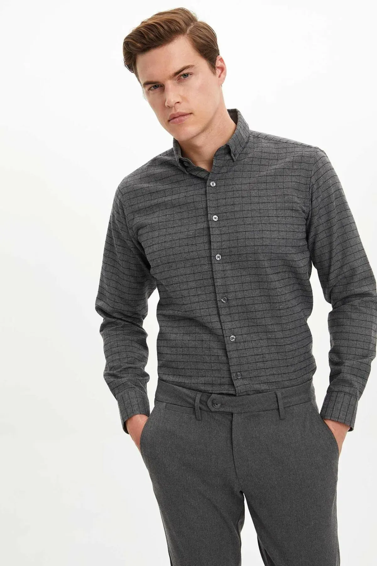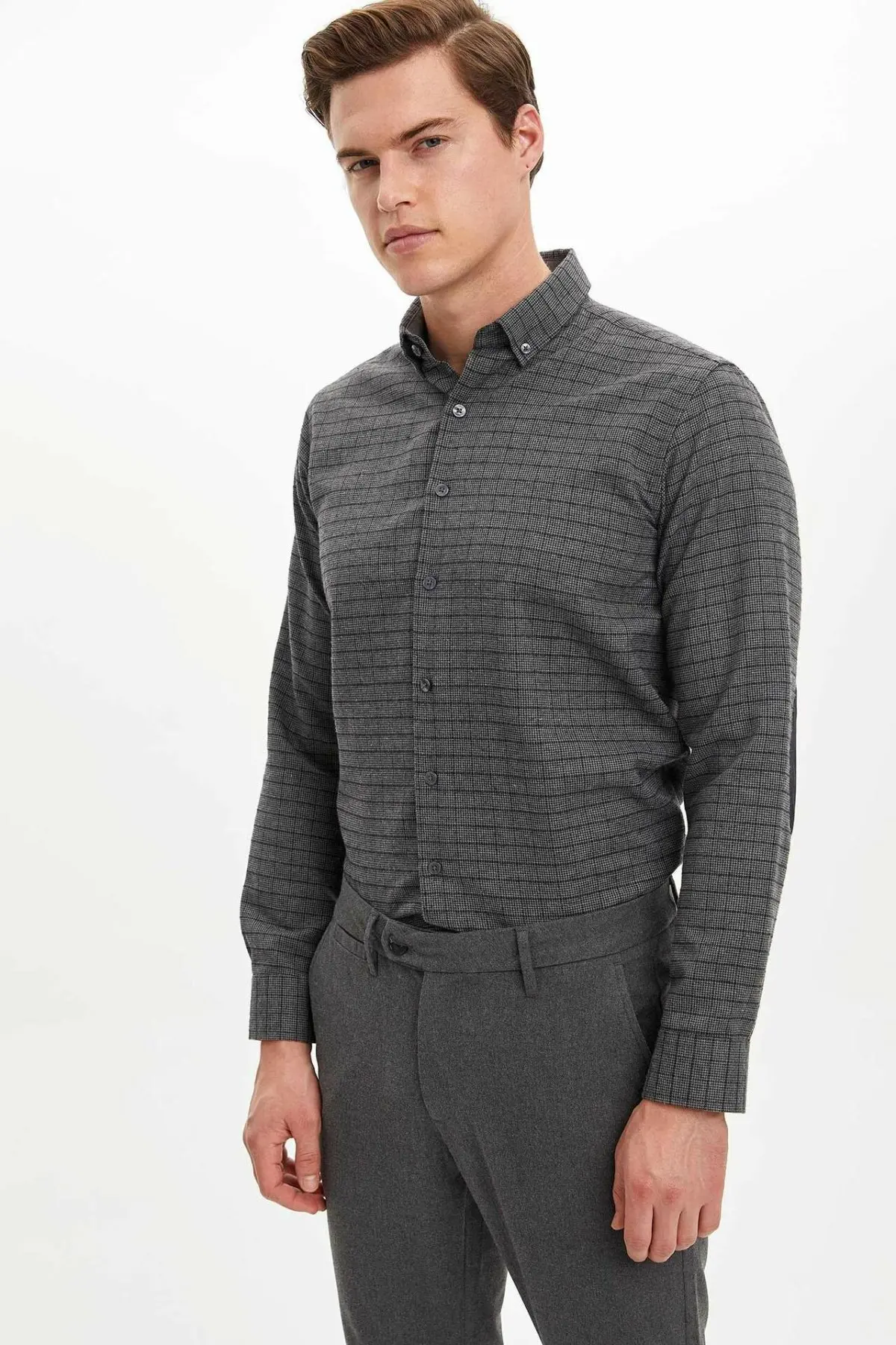 Special Offer Defacto Man Donkere Kleur Gestreepte Casual Smart Lange Mouwen Professionele Turn Down Kraag Shirts M2949AZ19WN Discount 55% Today!