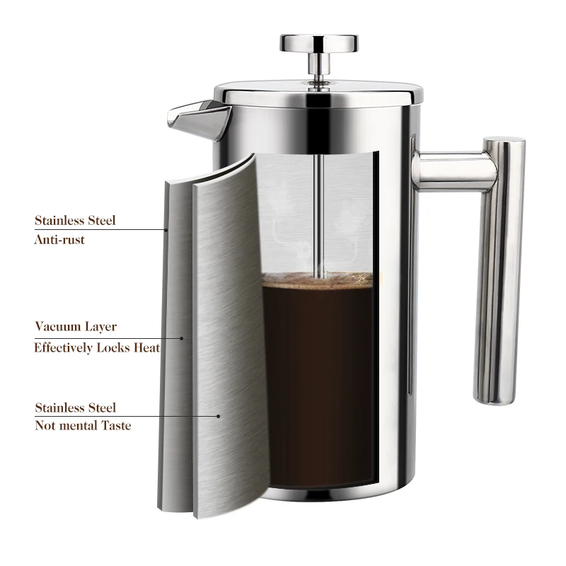 Special Offer Franse Pers Koffiezetapparaat Rvs Koffie Percolator Pot, Dubbele Muur Grote Capaciteit Handleiding Koffiekan Koffie Containers Discount 25% Today!