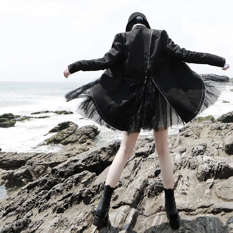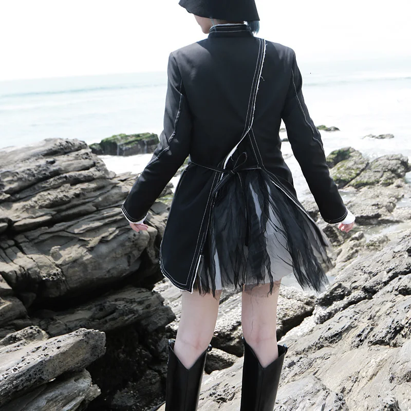 Special Offer [Eam] Losse Fit Black Mesh Split Asymmetrische Jas Nieuwe Stand Kraag Lange Mouw Vrouwen Jas Mode Herfst Winter 2020 1H0610 Discount 32% Today!