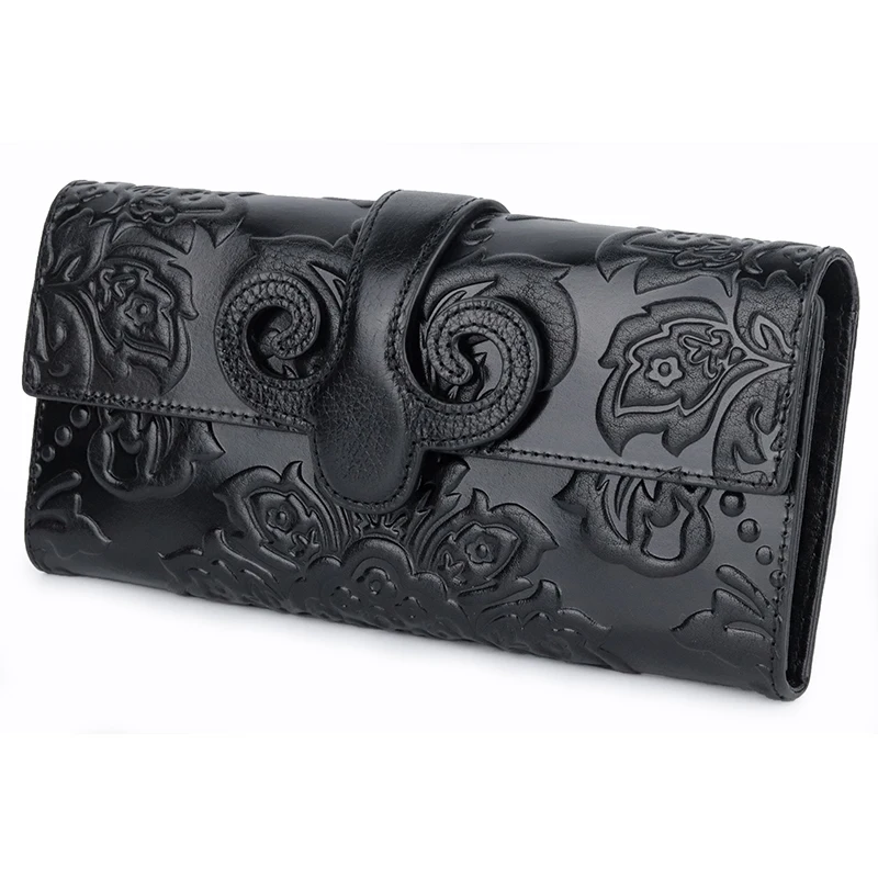 Special Offer Comforskin Premium Echt Olie Waxen Lederen Unieke Reliëf Bloemen Vrouw Portemonnee Beroemde Merk Lange Cover Stijl Vrouwen Portefeuilles Discount 36% Today!