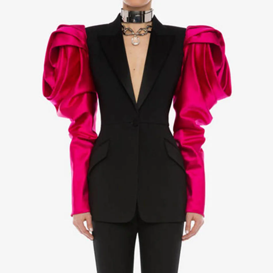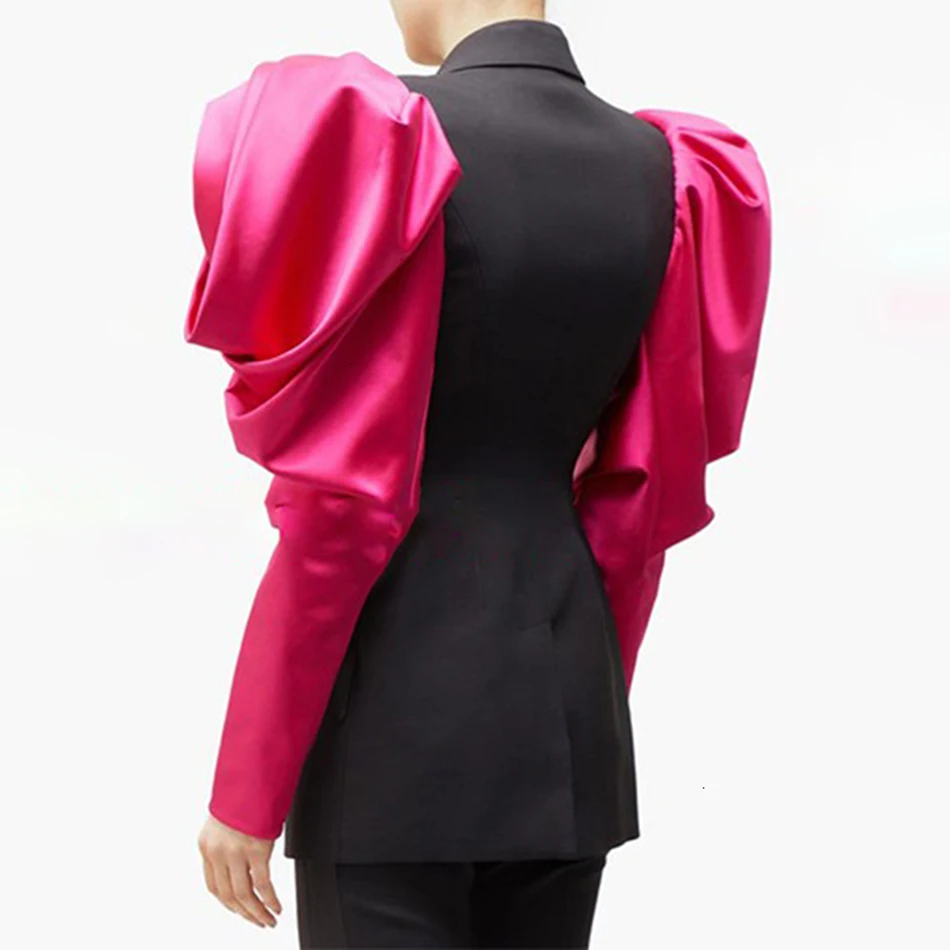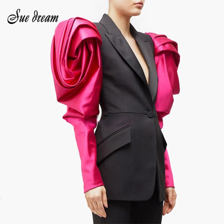 Special Offer 2019 Herfst Mode Nieuwe Vrouwen Stereoscopische Rose Lange Mouwen Slanke V hals Een Knop Split Zwart Patchwork Kleine Pak Jas Discount 42% Today!