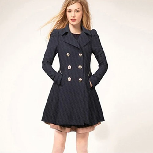 Special Offer Dames Mode Revers Lange Winterjas Double Breasted Uitloper Slim Fit Stof Jas Discount 19% Today!