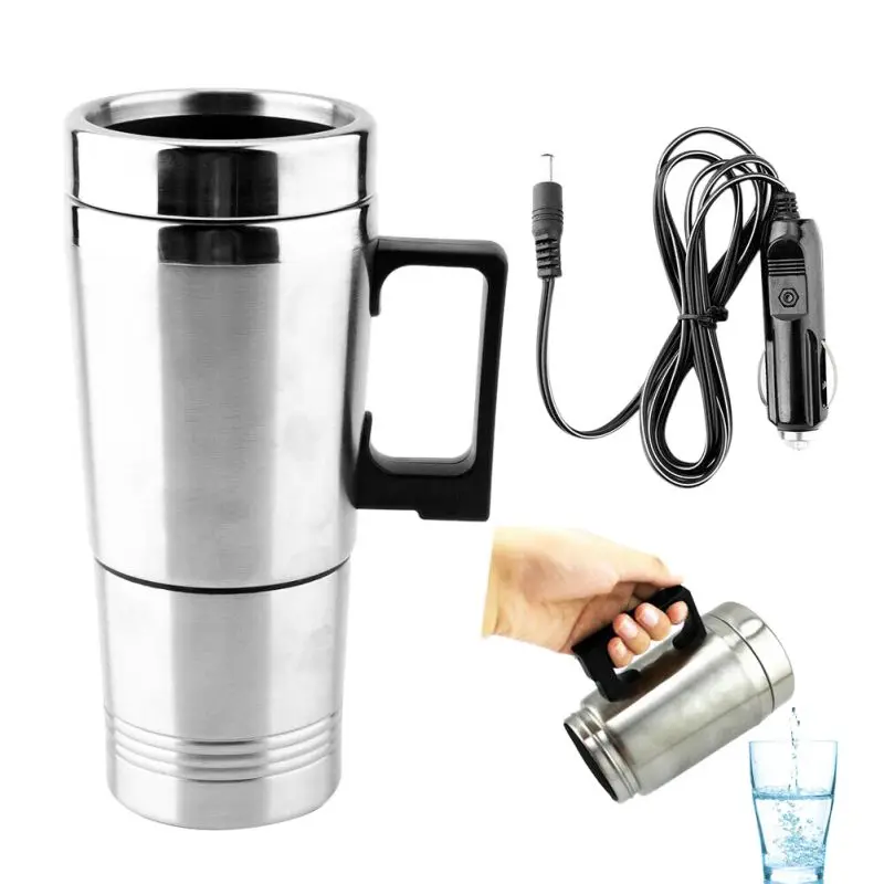 Special Offer Universele 450ml Elektrische In auto Roestvrij Staal Reizen Verwarming Cup Koffie Thee Auto Cup Mok voor de meeste auto cup houders 12 24V Discount 29% Today!