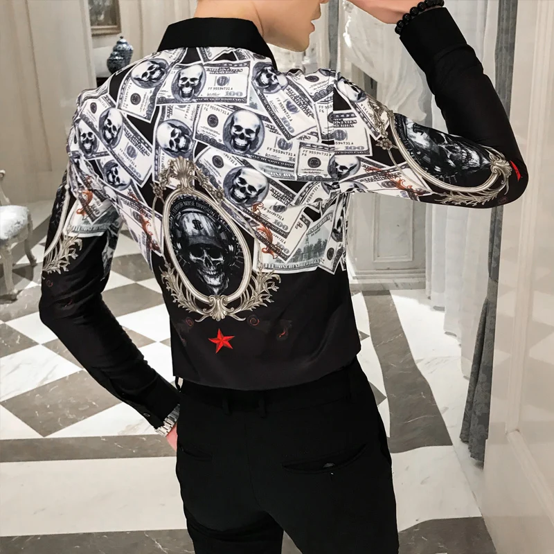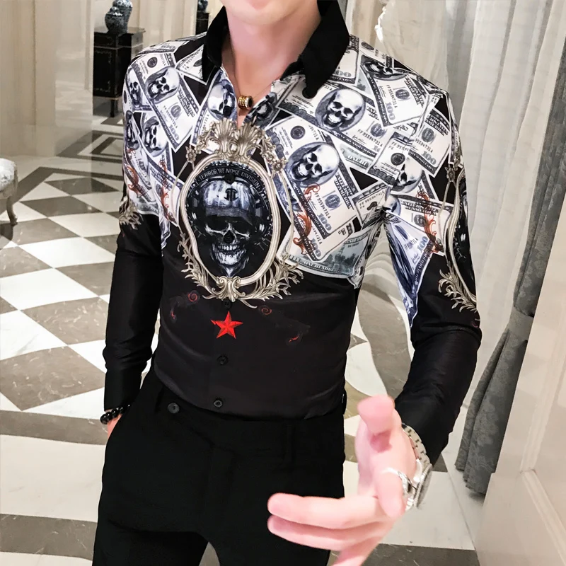 Special Offer Schedels Priint Shirt Mannen Lange Mouw Sociale Shirts 2019 Herfst Streetwear Casual Slim Fit Shirts Night Club Werk Shirt Camisa Discount 32% Today!