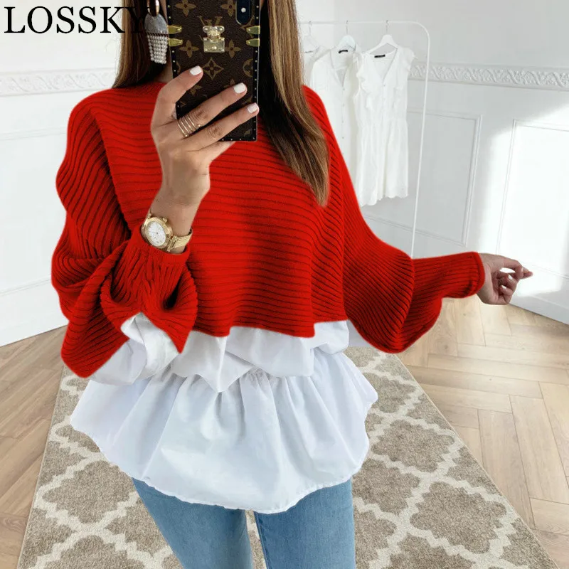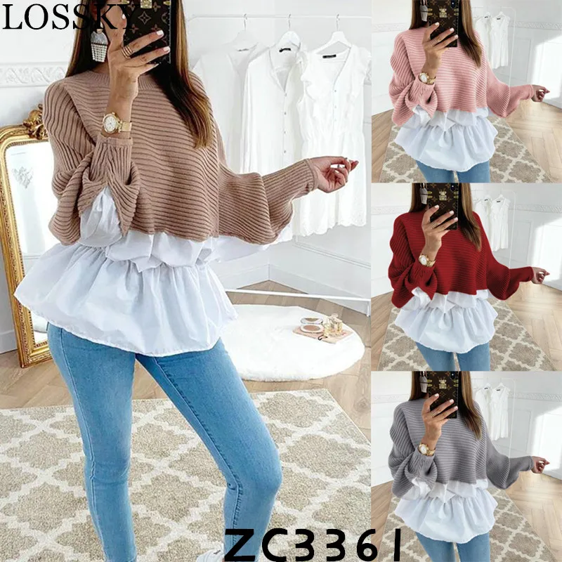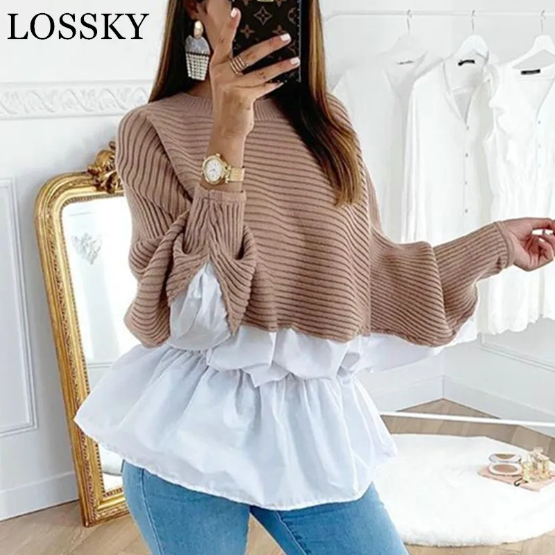 Special Offer Herfst Winter Elegante Tuniek Shirt Patchwork Toevallige O Hals Lange Mouw Ruches Koffie Koreaanse Blouse Shirts Street wear Kleding Discount 35% Today!