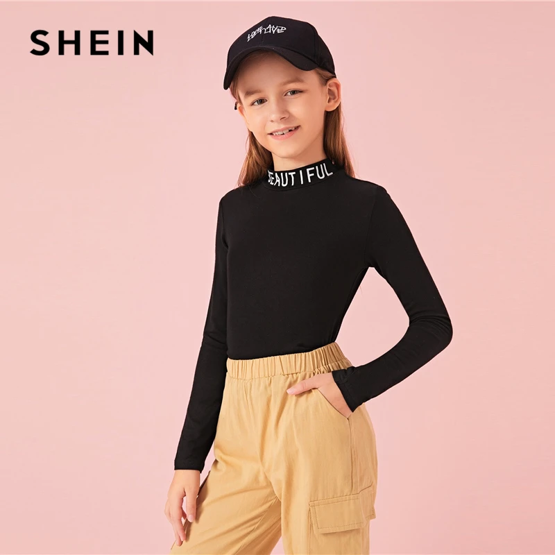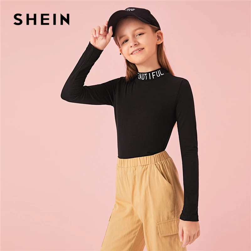 Special Offer Shein Kiddie Stand Kraag Brief Print Vorm Gemonteerd Casual T shirt Kids Top 2019 Herfst Lange Mouwen Skinny Kinderen Tees Discount 40% Today!