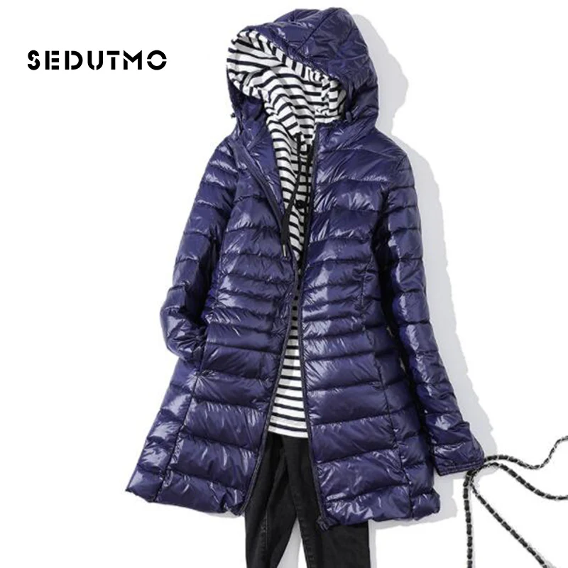 Special Offer SEDUTMO Winter Ultra Licht Lange Womens Donsjacks Plus Size 7XL Eendendons Jas Puffer Jas Slim Hooded Parka ED621 Discount 47% Today!