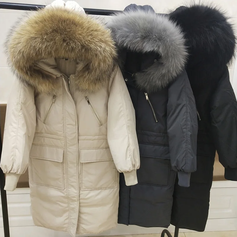 Special Offer Grote Echte Wasbeer Bontkraag 2019 Winter Parka Vrouwelijke Winter Jas Vrouwen Hooded Warm Lange Witte Eend Donsjack Dikke jas Discount 47% Today!
